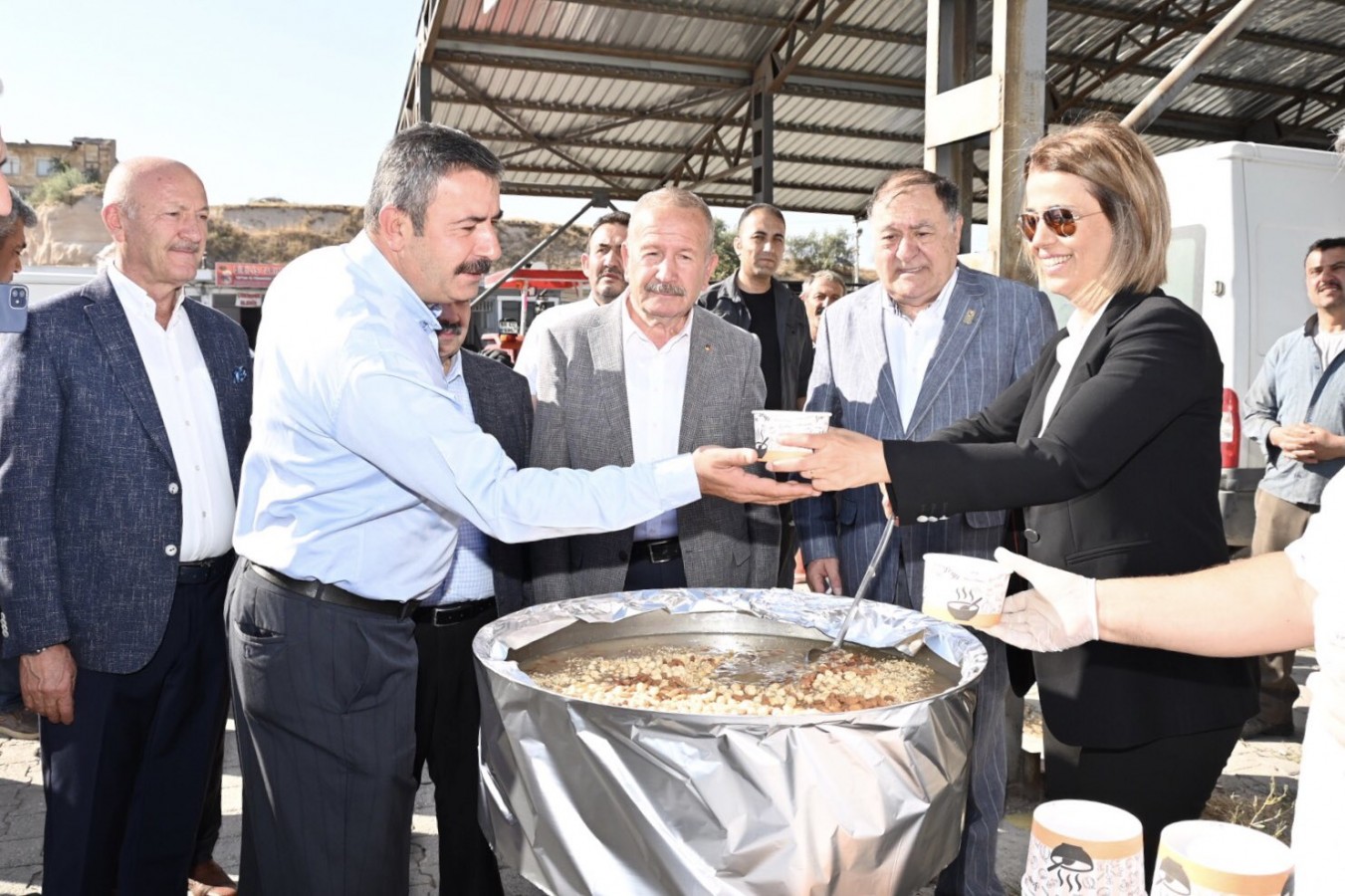 Zahire Pazarı'nda esnafla aşure bereketini paylaştı